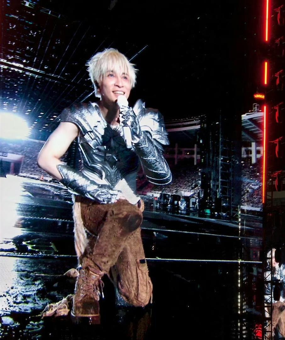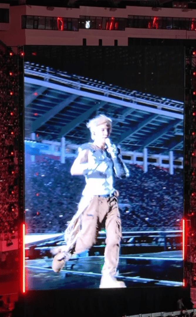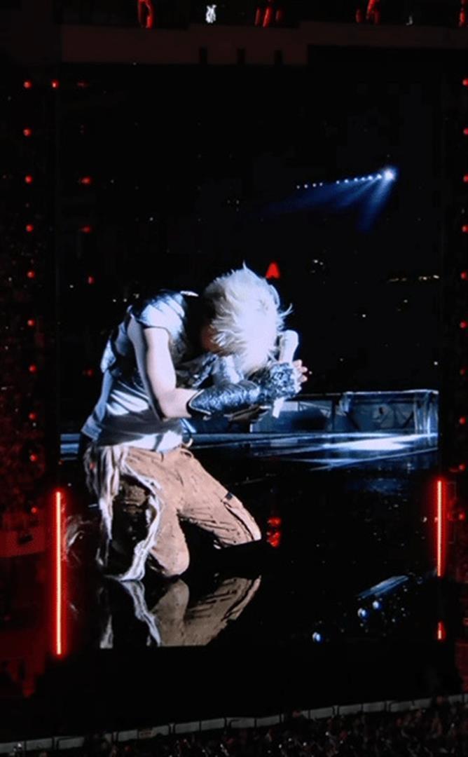 内场的粉丝们衣着雨衣也没用,混身湿透。 看台区也好不到哪儿去,雨水横着飞。 最要命的是舞台建设,暴雨一浇,价值过亿的音响哑了,93米宽的巨型舞台灯光全灭,数万只荧光棒进水失灵,成了罗列。