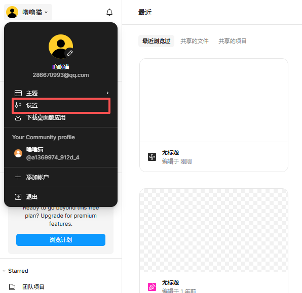 1.登录Figma官网(https://www.figma.com/),点击左上角个东谈主头像,接受「Settings(竖立)」;