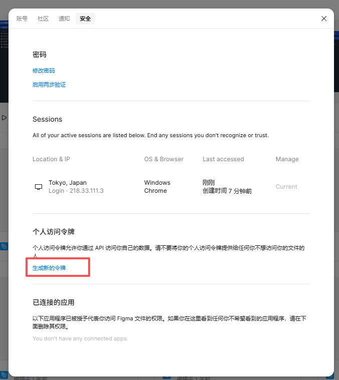 第二步:取得Figma个东谈主探员令牌(授权读取预料打算稿)
