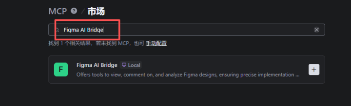 4.在MCP市集找到「FigmaAIBridge」,点击右侧「+」按钮;