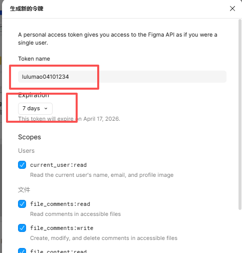 5.确立令牌(FigmaPersonalAccessToken):