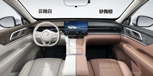 拉开车门,内饰给云釉白和砂陶棕两款配色。