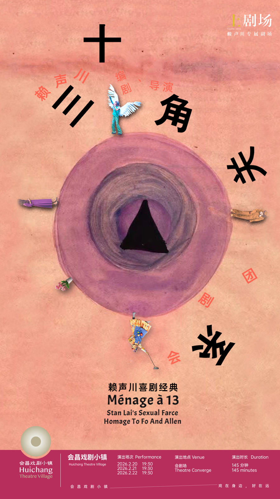 春节“隆咚隆咚锵·一起闹马年!”系列活动中,来自加拿大的“美丽贝特剧团Les Belles Bêtes”将首次来到中国过年,街头演出《蓝爵夫人》《火红歌后》融合高跷表演、现场音乐、戏剧动作与互动趣味,为观众带来一场充满欢乐与惊喜的节庆表演,来自福建漳州的《线狮少年》带来国家级非物质文化遗产线狮表演。赖声川代表作《十三角关系》《这一夜,我们脱口说相声》《蓝马》继续驻演。由表演工作坊艺术总监丁乃筝编剧、导演的新作《爱情,谎言,炒米粉》将于会昌首演。该作品翻译、改编自法国知名作家皮耶·马里福的《爱情中的冒险游戏》,把幽默诙谐的男女情动与会昌传统美味小吃融合,让人生百味都浓缩在戏剧舞台。