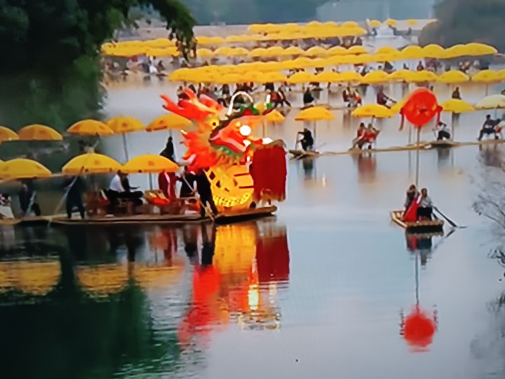龙首高亢,破开如镜的水面,划出一起流动的银河;