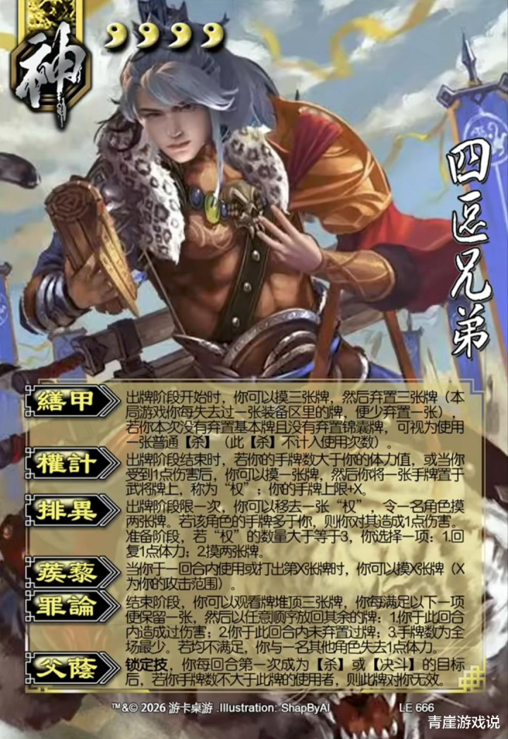 尽管如斯,四蛆手足组合后的强度照旧富有夸张,数值上足以碾压如今三国杀转移版的任何武将。毕竟是四合一,强度不需要质疑,但组合后的武将仍旧枯竭加伤、多刀、强命、刺眼技巧,手牌过的多,但能打出的牌并不算多。就算再强,也怕被针对,不异会被爆发击杀!