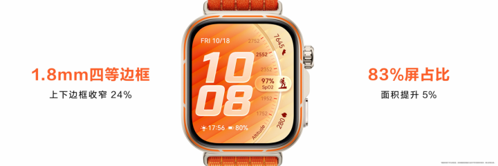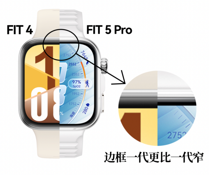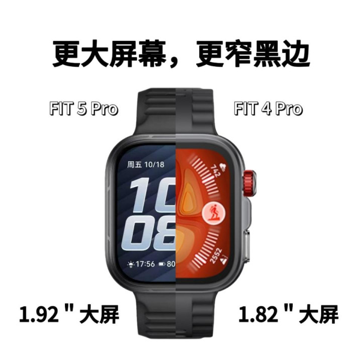 华为WATCH FIT 5系列包含两款家具,面向齐市东谈主群的WATCH FIT 5,以及为户外嗜好者打造的WATCH FIT 5 Pro。华为WATCH FIT 5法度版有五款活力配色,韵律黑、悦动白、风信紫、光织银、向新绿,而Pro版三款潮酷配色丹霞橙、雅丹黑、冰川白。华为WATCH FIT 5法度版整机只消27克,厚度9.5毫米,FIT 5 Pro稍稍重少量,30.4克,屏幕方面,83%的屏占比,比上一代边框更窄、屏幕更大了,大屏也能看到更多信息,况且3000nits峰值亮度也能让咱们在户外强光下也能看清屏幕内容,再也不必抬手遮一下腕表屏幕这么无执意的举动。华为WATCH FIT 5 Pro版引入航天级纳米瓷金属工艺,再互助上钛合金表圈与蓝相持玻璃,合座看起来尽头精熟,同期也很耐造。