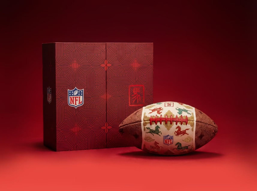作为全球最具影响力的体育赛事之一,超级碗的举办时间常与中国农历新年重叠。自2024年龙年首次推出生肖主题艺术橄榄球以来,NFL已将这一创意举措延续为年度传统。每年超级碗前夕,联盟都会推出一款以中国生肖为灵感创作的艺术橄榄球,将东方文化元素带上这一全球最大的体育舞台。