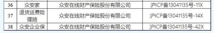 由该通报所附图表可知,其中序号为36、37、38的三个小依次为众何在线财产保障的“众安家”“退货运脚险理赔”和“众安企业保”。这三个小依次针对的是众何在线财产保障旗下产物,并非径直针对众安信科自身。