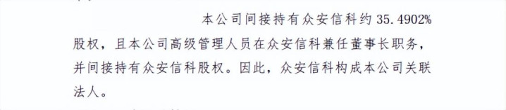 众何在线财产保障股份有限公司在该公告中同期清楚关联关系评释称,“本公司迤逦捏有众安信科约35.4902%股权,且本公司高等经管东说念主员在众安信科兼任董事长职务,并迤逦捏有众安信科股权。因此,众安信科构资本公司关联法东说念主。”