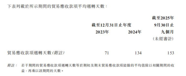 其招股书浮现,限定2023年、2024年及限定2025年9月30日止9个月,众安信科的生意应收款项盘活天数区别为71天、134天和153天。这并非小幅上扬,而是聚合走高。对众安信科而言,回款一度延缓,但其招股书指出,“于终末可行日历,于2025年9月30日的未结付生意应收款项中有东说念主民币121.2百万元或70.1%已于后来结付。”