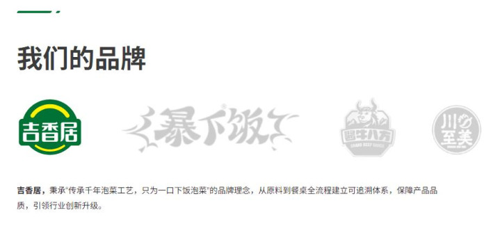 据艾媒斟酌数据,2023年吉香居鄙人饭泡菜全渠谈销售额中位居第一;旗下“暴下饭”品牌承接五年蝉联下饭酱类目销售冠军;“榨菜真芯”等单品年销破亿,奠定了其在佐餐食物范畴的江湖地位。