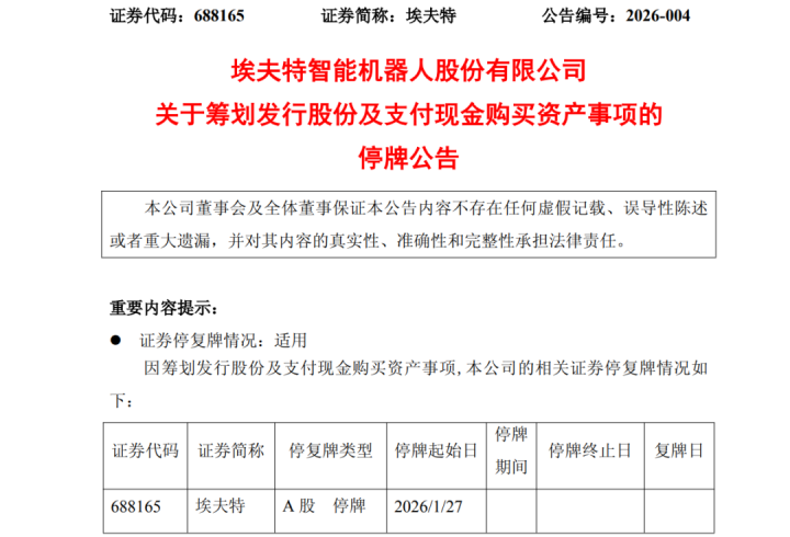 经恳求,公司股票自1月27日起停牌,瞻望停牌时期不跳跃10个往改日。待上述事项笃定后,公司将实时发布计划公告并恳求公司股票复牌。