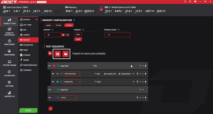 OCCT v17 Beta版对内存测试模块进行了全面重构与升级,绝对舍弃了传统的固定测试样式,转而给与全新的模块化架构,用户可字据本人测试需求,自主搭建并定制专属的内存压力测试经由。