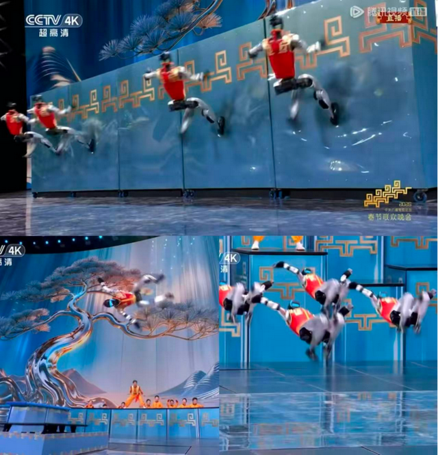 如果说仿渴望器东谈主蔡明是细念念极恐的惊艳,那宇树带来的技击扮演,即是炸翻全场的触动。