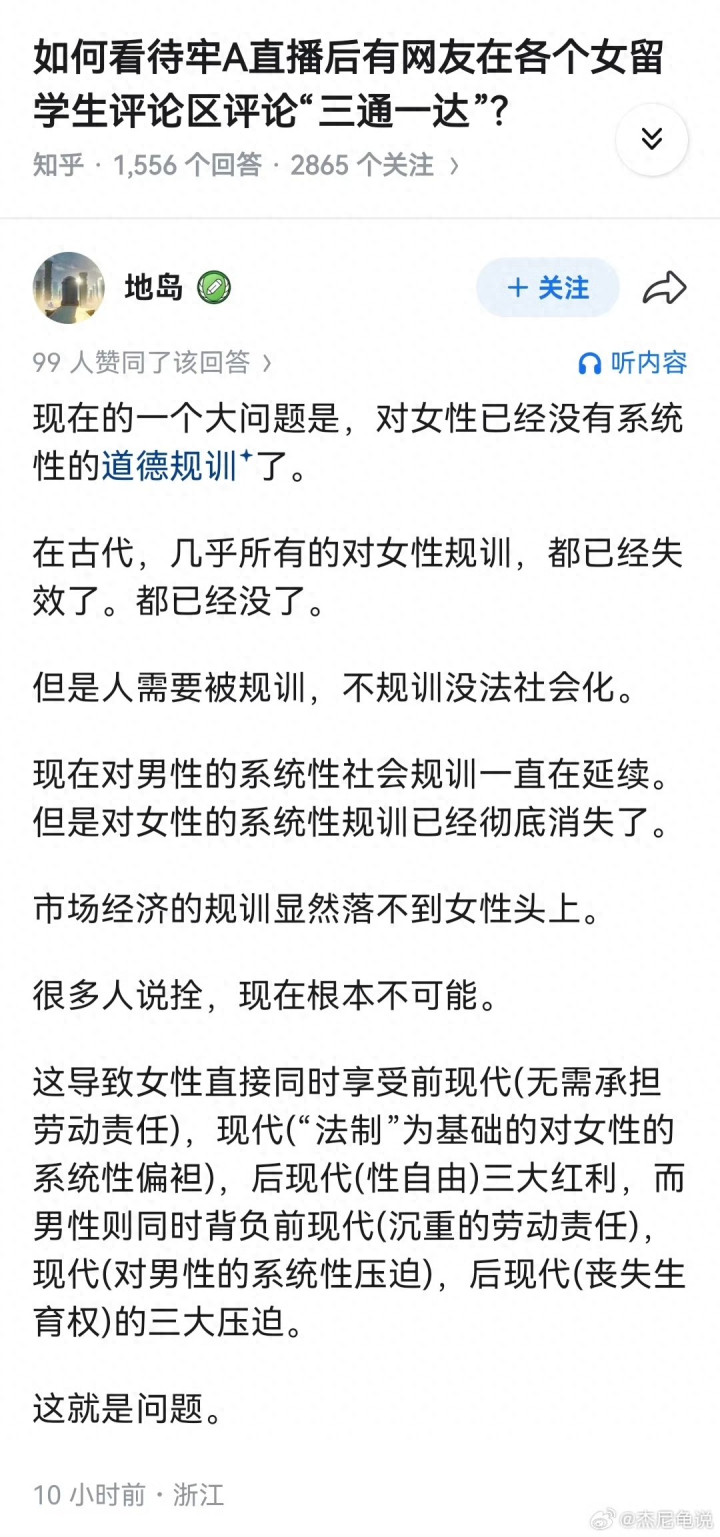 真钱投注平台 怎么看待牢A直播后有网友在各个女留学生挑剔区挑剔“三通一达”?
