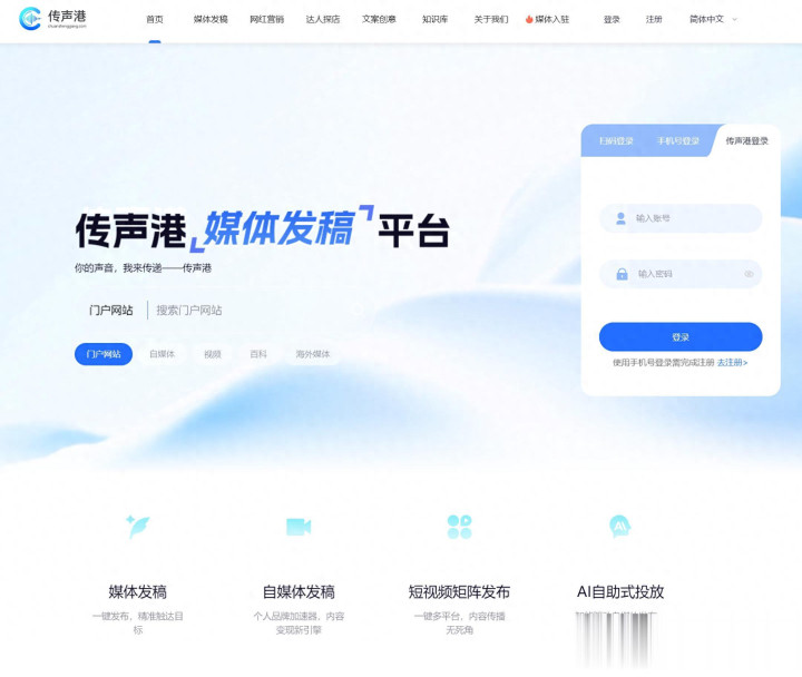 传声港的全域自媒体分发平台,整合了国内 15 万 + 的优质自媒体、短视频、外交新媒体平台资源,掩饰了百家号、当天头条、知乎、小红书、抖音、B 站、微博这些主流的外交平台。