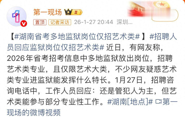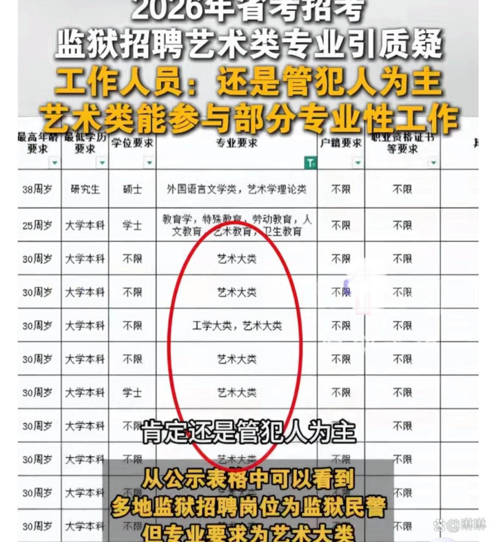 但公众的“萝卜岗”疑虑并非空穴来风。公务员招录的核心是公平公正,专业限定过细或集中指向某一类专业,容易引发对“量身定制”的猜测。此前已有研究显示,公考专业要求不规范可能导致招录争议,而湖南此次7所监狱集中限定艺术大类,却未详细说明岗位的具体矫治需求、艺术特长的考核标准等关键信息,难免让外界产生困惑。官方仅以“辅助专业性工作”笼统回应,未能充分解答“为何必须是艺术生”“具体承担哪些矫治任务”等核心问题,这正是争议发酵的根源。
