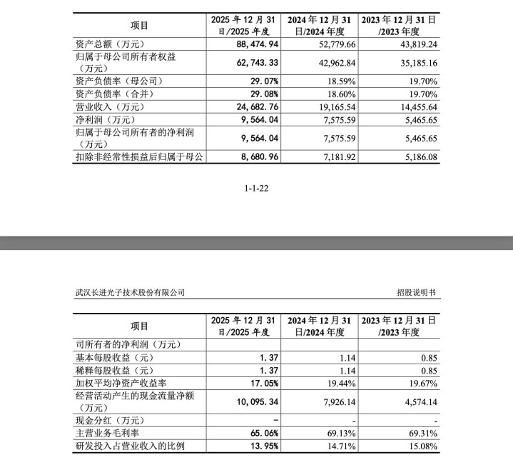 轮廓多份招股书,评释期内,出息光子的交易收入区分约1.08亿、1.45亿、1.92亿、2.47亿元;净利润区分为3678.17万、5465.65万、7575.59万、9564.04万元;扣非归母净利润区分为3372.59万、5186.08万、7181.92万、8680.96万元。