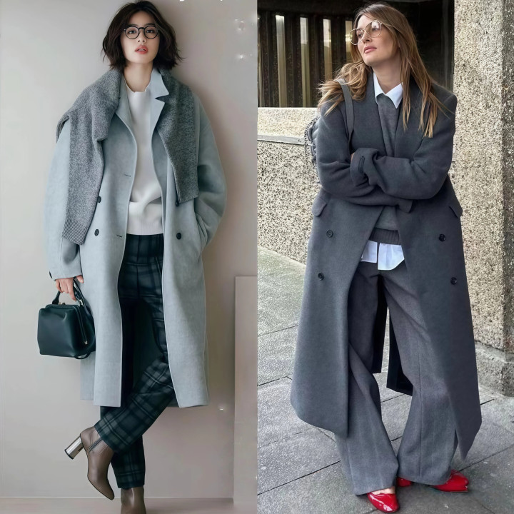 淌若你只预备最先一件灰色大衣,我的提出是径直买长款,最好是到膝盖以下、小腿中部的那种长度。短款大衣天然利落,但它的问题是太日常了,而况对腿型的条目相比高,腿粗不详腿弯的东说念主穿短款大衣,短处会被放大。