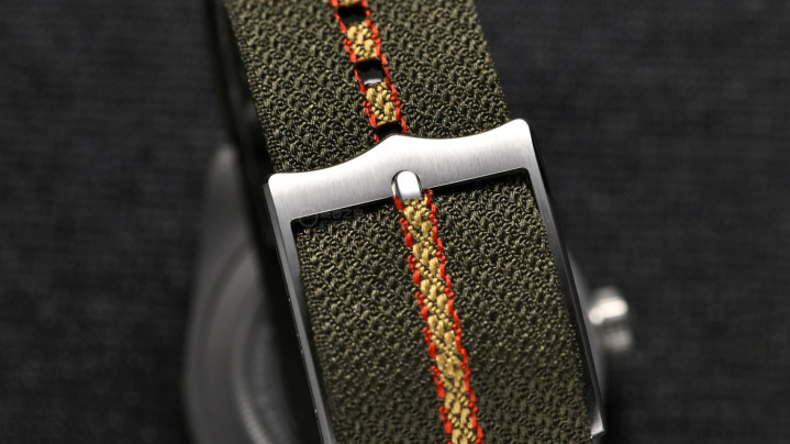 这只游侠型最大的识别点之一即是这条绿色织纹表带,上头有红色和米色条纹,况且是针扣。它带来的后果特地平直,哪怕你穿得很往常,这条带子也会把整只表往“原野、工装”那儿拉,夏天也更透气。