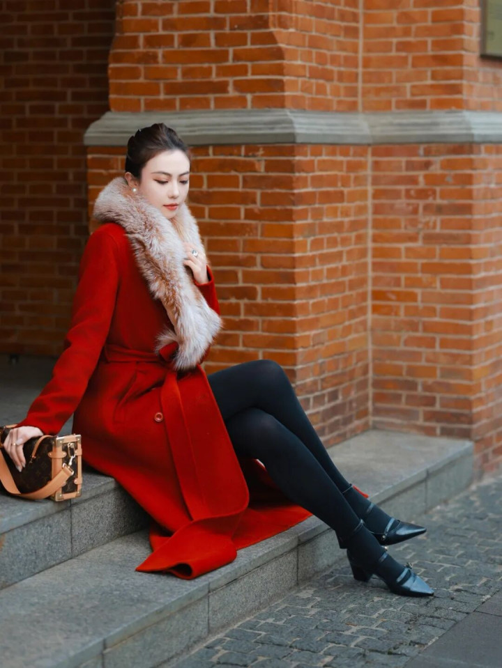 真钱投注 红黑配封神! 厚黑袜 + 红色大衣, 经典永不外时的悦目