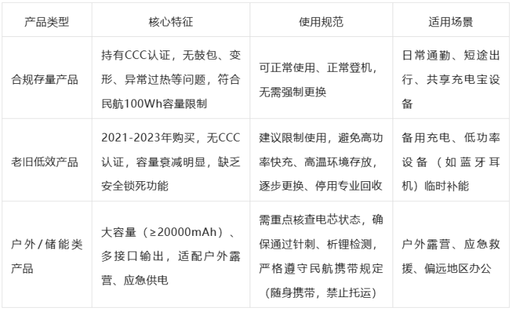 凭据洛图科技(RUNTO)统计,限制2026年4月,中国国内出动电源阛阓的存量鸿沟高出了5.5亿台。针对这部分存量居品提议按类型、合规性可分为三大类,使用与解决需严格远离,幸免安全隐患。