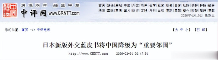 4月10日,日本晓谕左迁对华连络,其皮毛茂木敏充在内阁会议上报告了2026年版《酬酢蓝皮书》,把中国从“最进攻的双边陲系之一”左迁为“进攻邻国”。