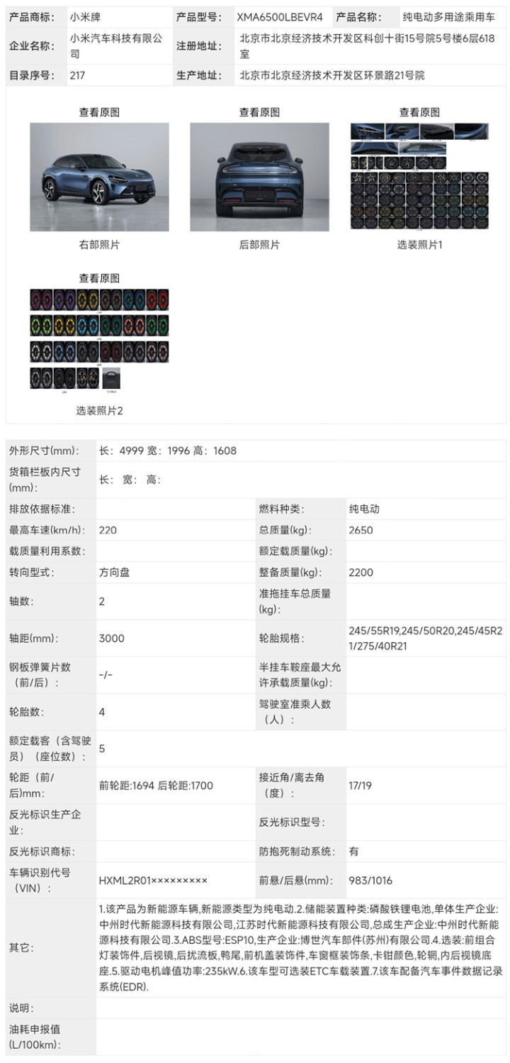 就在上周,工信部最新一批陈说目次悄然更新。眼尖的车圈东谈主士发现,一款型号为XMA6500LBEVR4的新款小米YU7昭着在列。