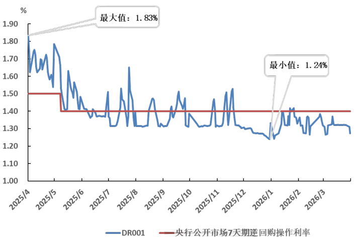 2026年3月,正规投注平台银行业进款类金融机构间利率债隔夜质押式回购(DR001)月加权平均利率为1.31%,环比着落2个基点;DR007月加权平均利率为1.44%,环比着落5个基点;银行间阛阓隔夜质押式回购(R001)月加权平均利率为1.39%,环比着落2个基点。2026年3月,DR001与央行公开阛阓7天期逆回购操作利率的利差日均值为-9个基点,R001与DR001的利差日均值为7个基点。