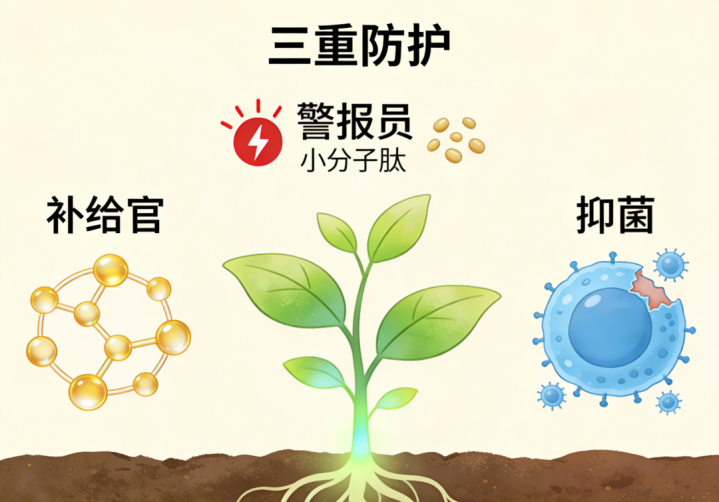 酵母发酵多肽并非闲居的“信号分子”,它更像植物免疫体系的“万能守卫”,一东说念主身兼三职,为植物筑起立体看护网。